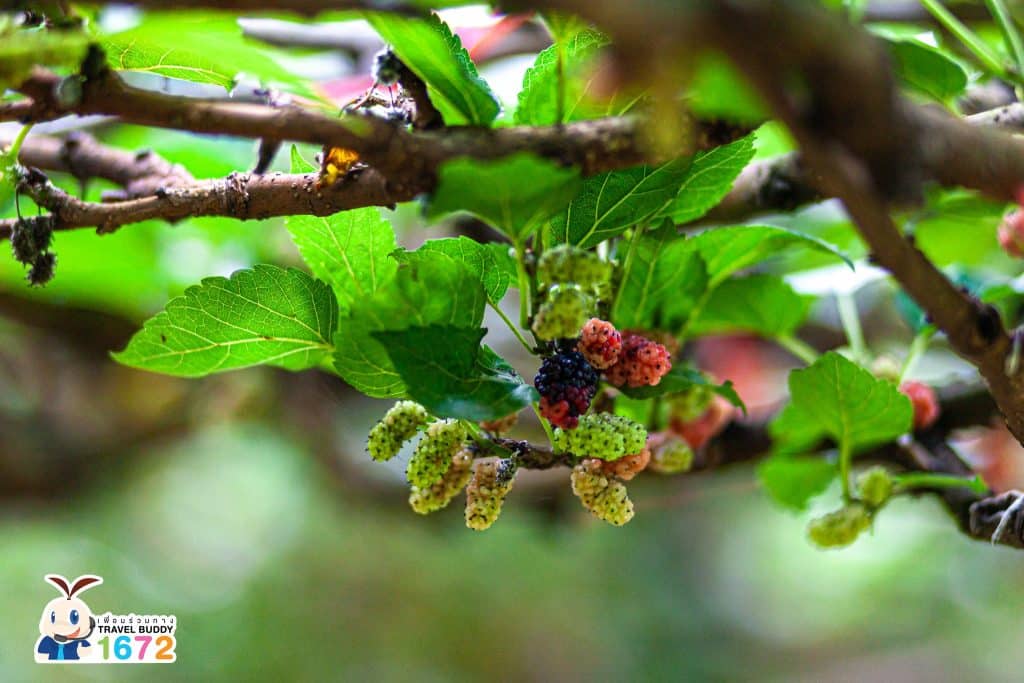 ที่นี่เป็นสวนมัลเบอร์รี หรือ ลูกหม่อน ผลไม้ตระกูลเบอร์รีที่หลายๆ คนอาจจะคุ้นชื่อกัน มีสีสันจัดจ้านแถมยังนำมาแปรรูปเป็นผลิตภัณฑ์อื่นๆ ได้หลากหลายอีกด้วย