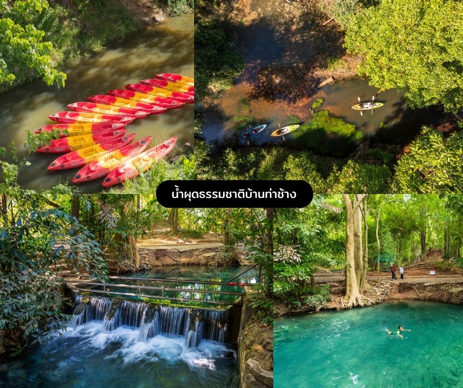 น้ำผุดธรรมชาติบ้านท่าช้าง แหล่งท่องเที่ยวตามกระแสโซเชียลที่กำลังเป็นจุดหมายปลายทางของใครหลาย ๆ คน ด้วยความที่น้ำใสบวกกับภาพบรรยากาศร่มรื่น และมีกิจกรรมคูล ๆ อย่างพายเรือคายักล่องตามลำคลอง จึงทำให้ที่นี่กลายมาเป็นจุดเช็กอินยอดฮิตอีกแห่งหนึ่งของชาวโซเชียล 🌿