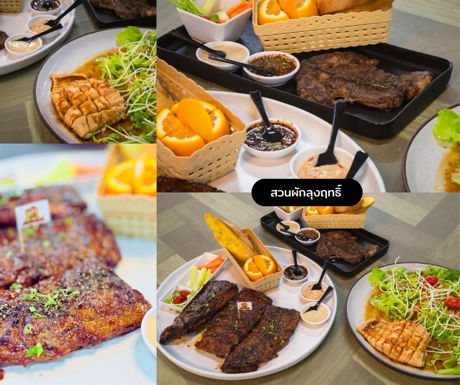 สวนผักลุงฤทธิ์ ร้านอาหารที่เอาใจสายสุขภาพและสายเนื้อ เสิร์ฟเมนูอาหารเพื่อสุขภาพอย่างสลัดผักออร์แกนิกจากสวนผักที่ปลูกขึ้นเอง และเมนูเอาใจคนชอบทานเนื้ออย่างสเต็กเนื้อ โดยเมนูห้ามพลาดที่มาแล้วต้องสั่งมาลองทานก็คือ สเต็กซี่โครงหมูย่าง ซึ่งบัดดี้ทานแล้วยังติดใจในความอร่อยของตัวเนื้อหมูนุ่ม ๆ ที่หมักซอสได้รสชาติกลมกล่อม สเต็กเนื้อย่างสันแหลมไทยวากิว และยังมียำแซลม่อนจานใหญ่มีมาพร้อมกับผักสด ๆ หน้าตาน่ารับประทานมาก ถ้ามีโอกาสบัดดี้ต้องกลับไปทานซ้ำอีกแน่นอน เพราะอาหารเค้าจานใหญ่สมราคา ที่สำคัญอาหารอร่อยมากด้วย 🌿