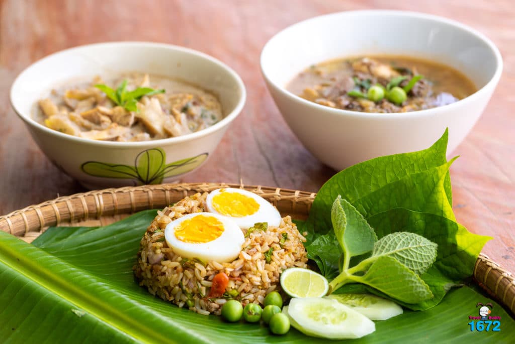 วันที่แอดไป แอดได้ลองรับประทาน “ข้าวยำกุ้งจ่อม” ด้วยนะ เป็นเมนูที่ใช้กุ้งฝอยหมักเกลือเก็บไว้จนเปรี้ยวได้ที่แล้วนำมาปรุงสุก ผัดใส่ข่าอ่อน จากนั้น นำมาคลุกกับข้าวกล้องผกาอำปึล โรยสมุนไพรต่าง ๆ เสิร์ฟคู่กับผักสด อร่อยจนลืมไม่ลงเลยล่ะ