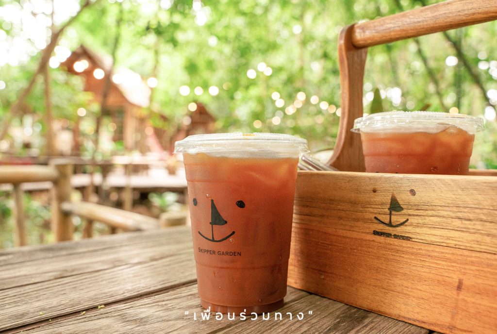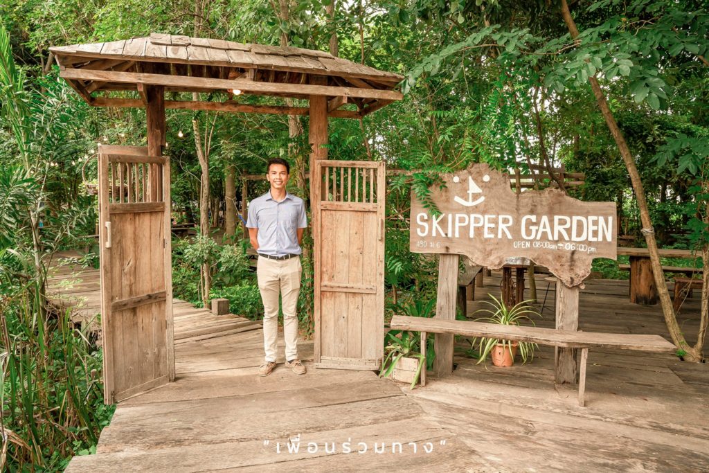 กิ่งปลูกปั้น Skipper Garden ขึ้นเพราะต้องการให้แขกไปใครมาได้รับพลังบวกจากต้นไม้พวกนี้ วางตัวเป็นแหล่งชาร์จแบตธรรมชาติ เปิดพื้นที่ป่ากลางเมืองให้ทุกคนมาพักผ่อนหย่อนใจ จิบกาแฟ นอนเปล รับลมกลางวันอุ่น ๆ มีสุมทุมพุ่มไม้เป็นเครื่องกีดกั้นความเครียดทิ้งไปตั้งแต่หน้าร้าน ร่มไทรใบบังเป็นร่มกางกั้นแสงแดดให้ต้องผิวแต่พอดี