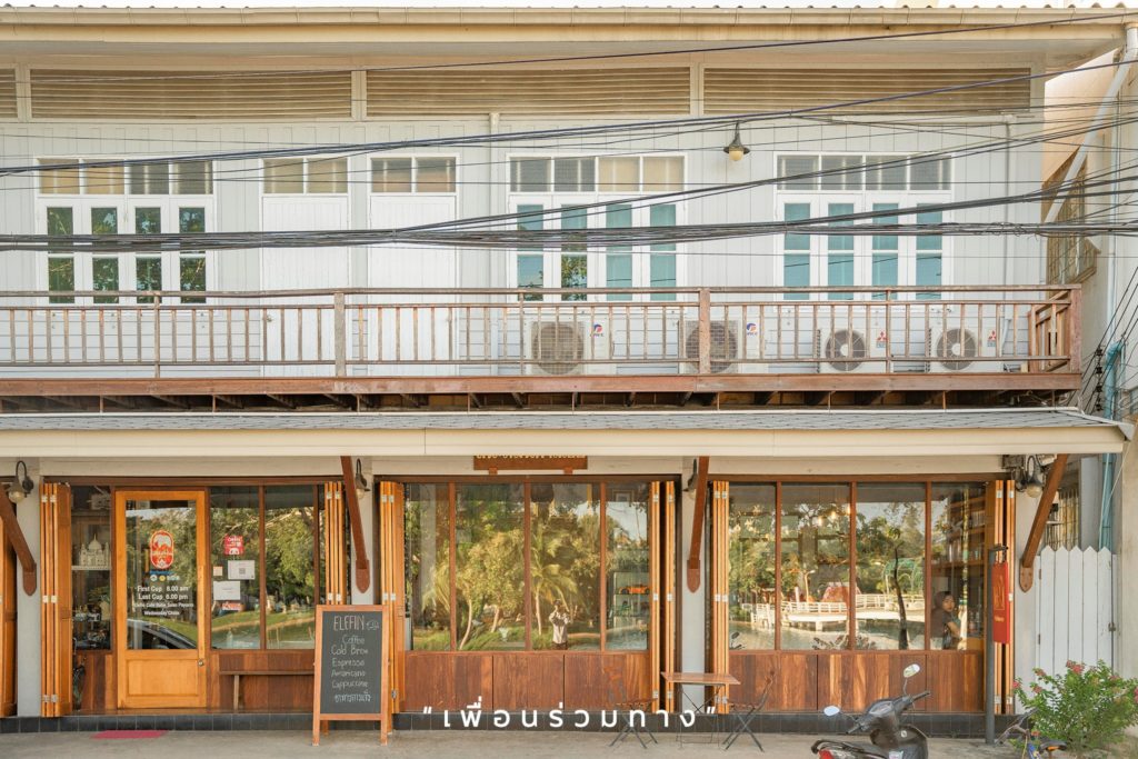 พอถึงคราวได้ทำ ‘Elefin’ ธุรกิจร้านอาหารของตัวเองซึ่งมีสาขาอยู่ทั้งกรุงเทพฯ และเชียงใหม่ จึงอยากกลับมาเปลี่ยนมรดกบ้านเก่าของครอบครัวริมบึงพลาญชัย เป็นร้านบริการอาหารและเครื่องดื่มภายใต้เครือเดียวกัน