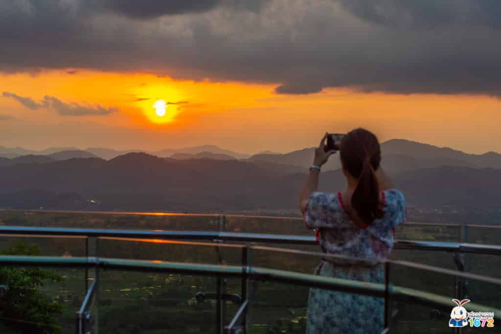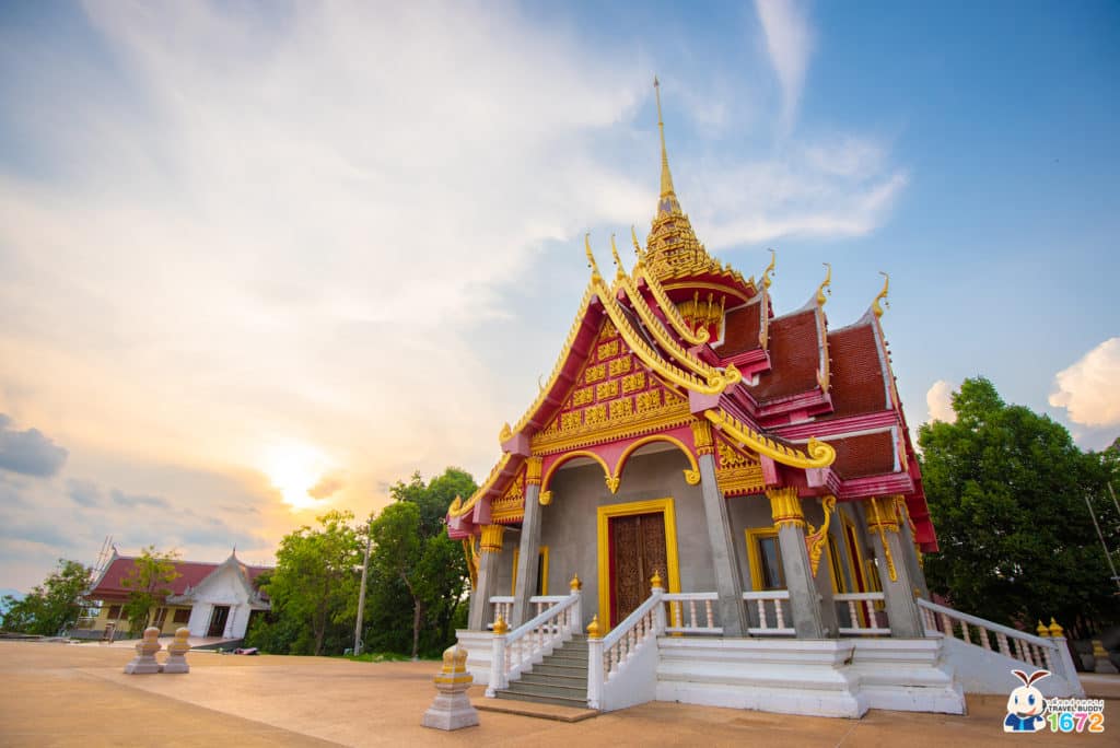 หากมาเดินเล่นที่นี่ในช่วงเย็น ก็จะได้เห็นวิวพระอาทิตย์ตกดินและท้องฟ้าสีทองด้วยนะ บอกเลยว่าใครที่มาหนองคาย ต้องมาที่วัดผาตากเสื้อแห่งนี้