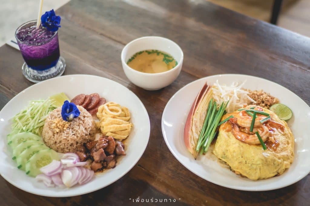 เมนูโดดเด่นของที่นี่เป็นอาหารที่รับประทานได้ทุกวัน อย่างข้าวคลุกกะปิ ผัดไทย ยำวุ้นเส้นโบราณ รวมถึงขนมจีนเส้นสดทำเอง แต่ที่สำคัญคือการใช้วัตถุดิบผักสวนครัวจากสวนที่ปลูกเองด้านหลังบ้าน ไม่ว่าจะเป็นขิง ข่า มะเขือ ใบเตย ตะไคร้ มะกรูด มะนาว กล้วย รวมถึงอัญชันที่กลายเป็นเมนูเครื่องดื่มประจำของร้านด้วย