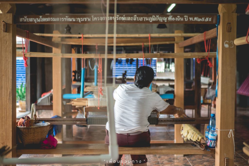 “บ้านโนนกอกเลิกทอผ้ามายี่สิบกว่าปีแล้ว ผมต้องเริ่มจากหาช่างทอลูกหลานที่ยังหลงเหลือ เรามารวมกลุ่มกันทอผ้าแบบโบราณ จากคนเดียวเป็นสอง สาม สี่ ห้า จนปัจจุบันยี่สิบห้าคน รวมถึงเรามีเครือข่ายขยายไปสองร้อยกว่าคนในหมู่บ้านต่าง ๆ”