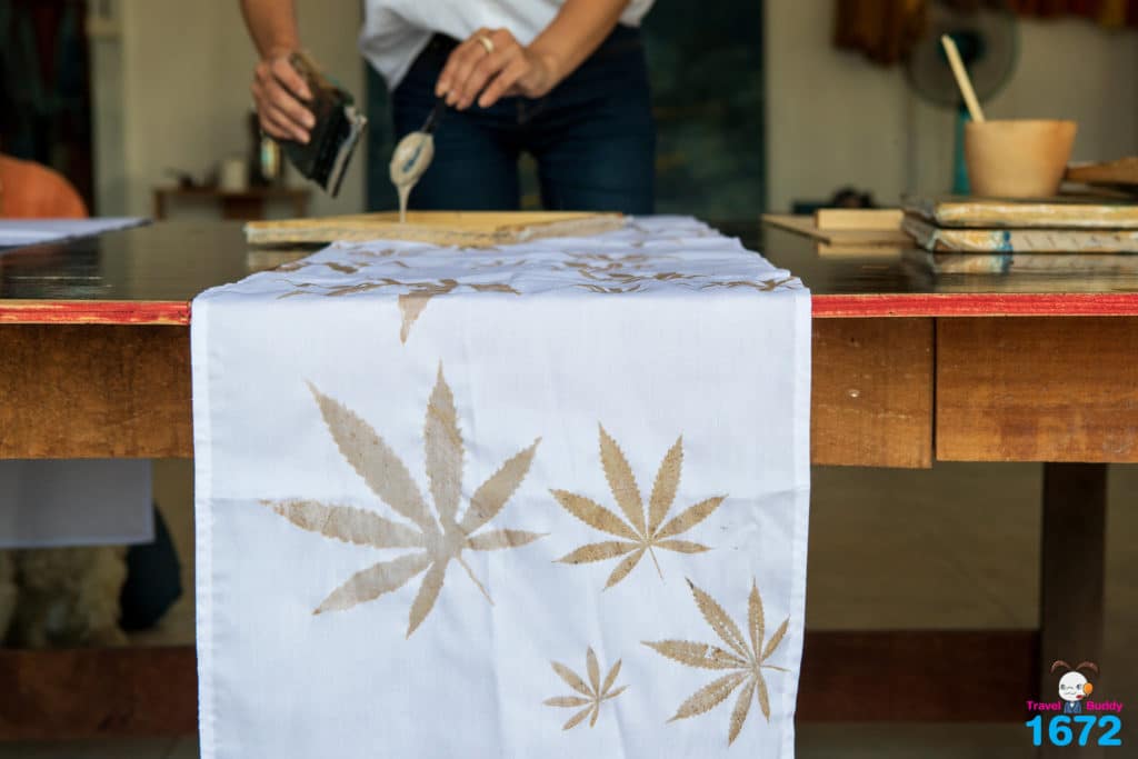 เราสามารถออกแบบลวดลาย จัดวางตามความชอบของเรา หลังสร้างลายเสร็จแล้วก็จะนำไปย้อมคราม