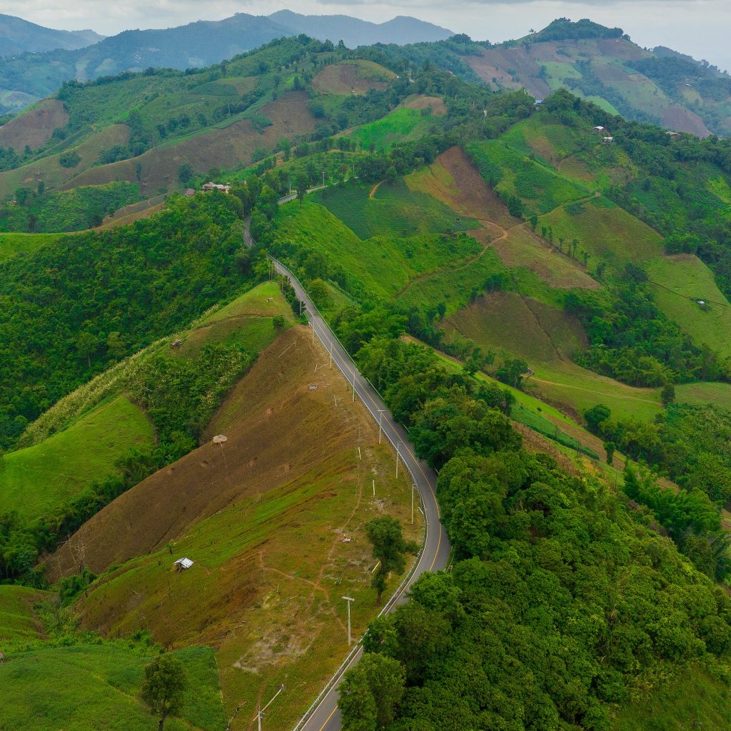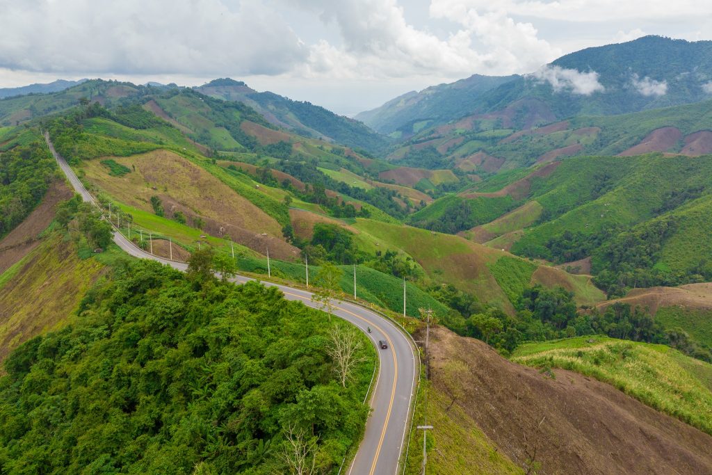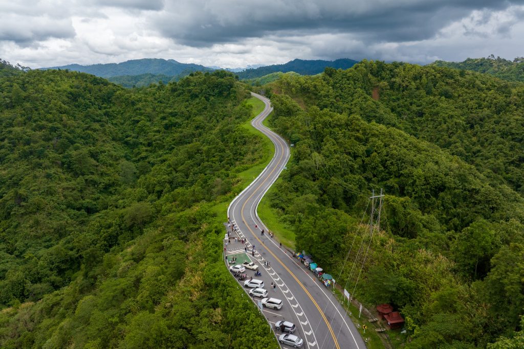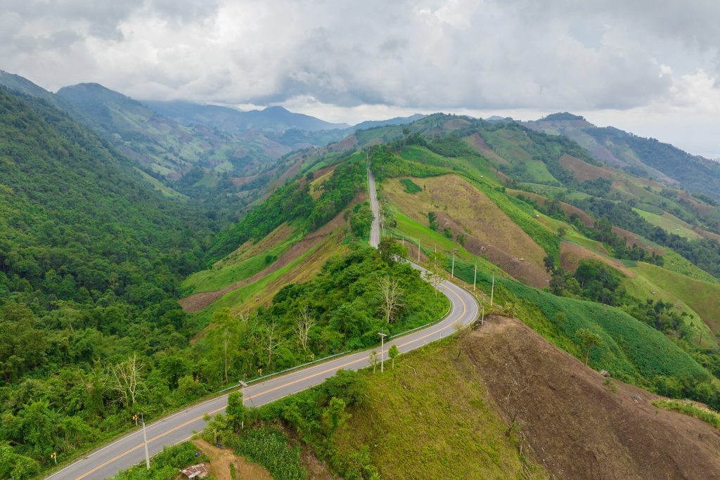 ทางหลวงหมายเลข 1256 (ปัว-บ่อเกลือ) ช่วงที่เป็น “ถนนลอยฟ้า” คือเป็นช่วงที่ถนนตัดผ่านบนสันเขา สองข้างทาง มองเห็นทิวทัศน์สวยงาม มุมโดรนจะยิ่งเห็น ถนนลอยฟ้าได้ชัดเจน จุดนี้ (รูปกลาง) ถ้ามาจาก อ.ปัว จะอยู่ประมาณช่วงหลักกิโลเมตรที่ 22 ของทางหลวงหมายเลข 1256