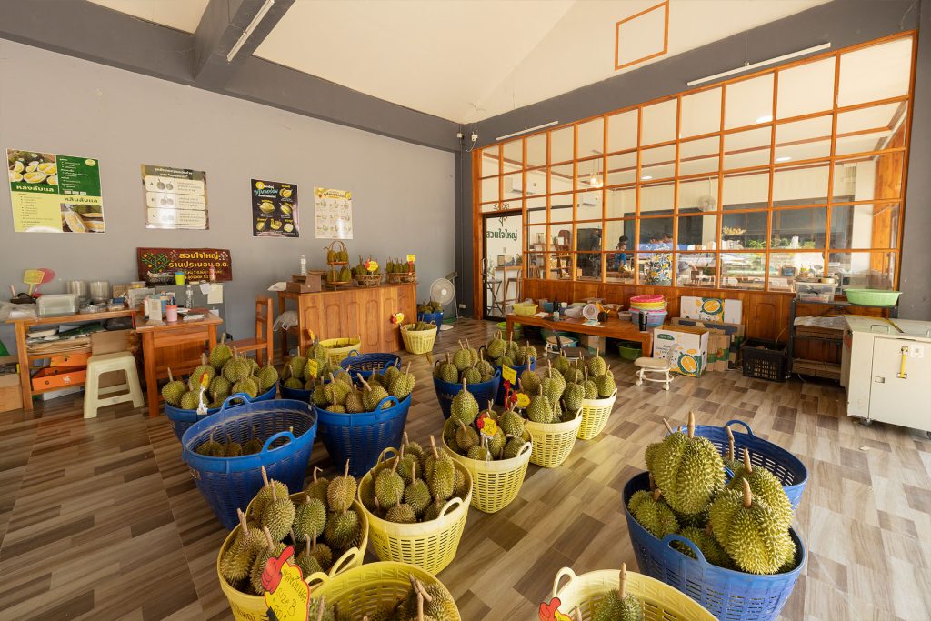 นอกจากนี้ ที่นี่ยังมีสวนทุเรียนอยู่ลึกเข้าไปด้านหลังล้งทุเรียน ซึ่งเพื่อน ๆ สามารถเข้าไปเดินชมและถ่ายรูปเช็กอินกับทุเรียนแบบเก๋ ๆ ได้ด้วย