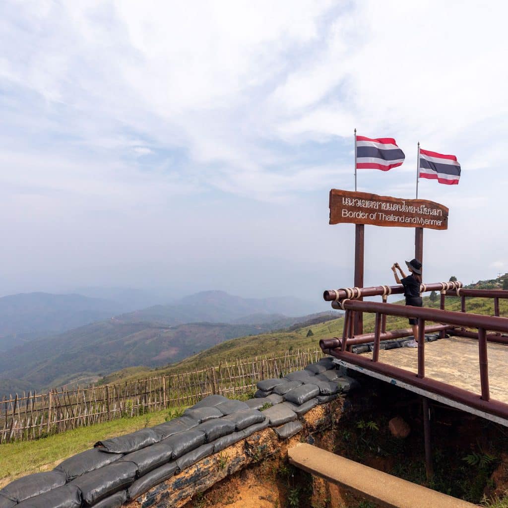 บัดดี้ขอเริ่มต้นทริปนี้ด้วยจุดชมวิวสวยบริเวณชายแดน ที่สามารถมองเห็นวิวแบบพาโนรามาของเทือกเขาฝั่งเมียนมาสีเขียวหลายเฉดสลับซ้อนกัน พร้อมก้อนเมฆและท้องฟ้าที่มองเห็นได้ไกลสุดลูกหูลูกตา