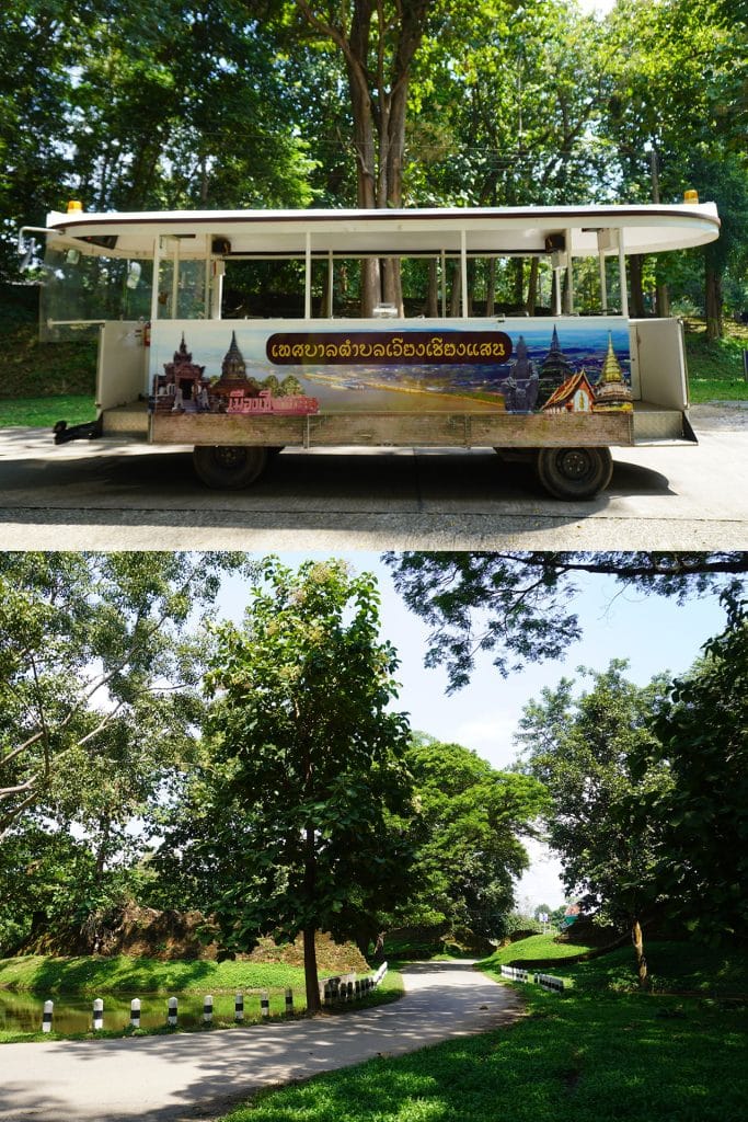 หลังจากนั้น การเที่ยวของบัดดี้จะเป็นการนั่งรถรางชมตัวเมืองเชียงแสน ที่มีโบราณสถานอยู่แทรกกับบ้านเรือนของชาวบ้าน มีเกร็ดเล็กเกร็ดน้อยที่น่าตื่นเต้นมากมายให้เรียนรู้ อย่างเช่นมีการนำอิฐของกำแพงเมืองเชียงแสนไปหาค่าอายุด้วยวิธีเทอร์โมลูมิเนสเซนส์ที่มหาวิทยาลัยเชียงใหม่ แล้วพบว่าค่าอายุดินและอิฐของกำแพงเมืองเชียงแสนสมัยที่นำไปตรวจสอบมี 1,400-1,600 ปีมาแล้ว