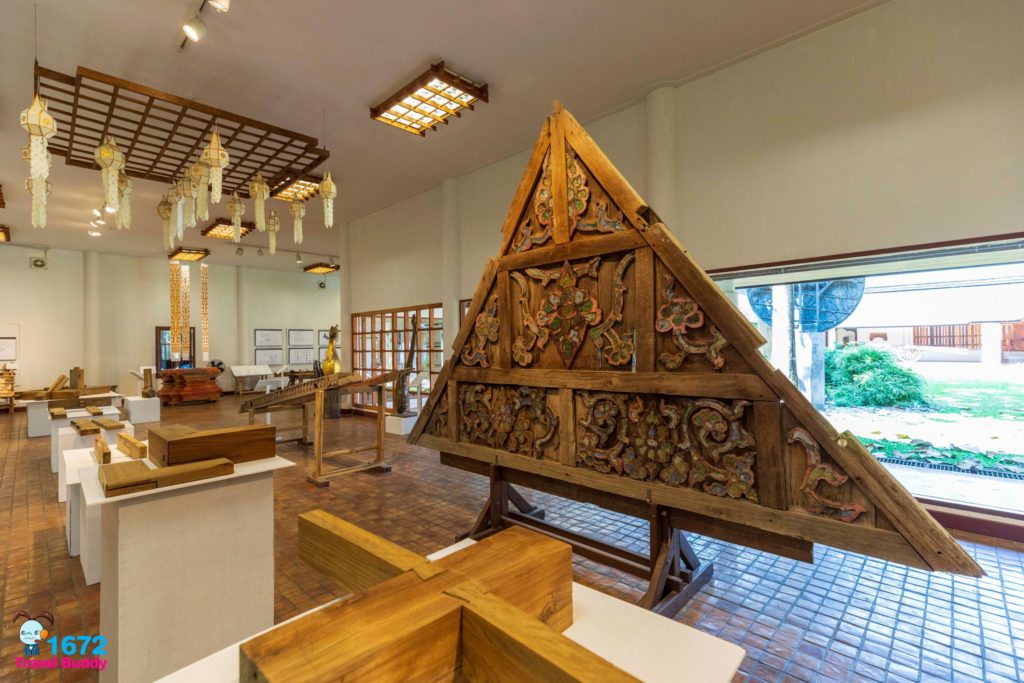 ศิลปวัตถุไม้สัก ที่นำมาจัดแสดง ได้แก่ งานไม้ในสถาปัตยกรรมไทยต่างๆ เช่น ไม้แกะสลัก ไปจนถึงเครื่องใช้ในชีวิตประจำวันของชาวล้านนา อันแสดงให้เห็นถึงความผูกพันที่แนบแน่นของชาวเหนือที่มีต่อไม้สักในหลายมิติ