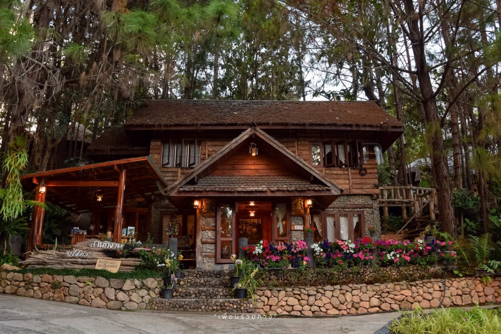สำนักงานโครงการหลวงบ้านวัดจันทร์ เป็นอาคารปีกไม้สองชั้นตั้งอยู่ท่ามกลางป่าสนร่มรื่น หากใครเลือกมาพักที่นี่ จะต้องมาติดต่อเพื่อเช็กอินและเช็กเอาท์ที่พัก ณ จุดนี้
