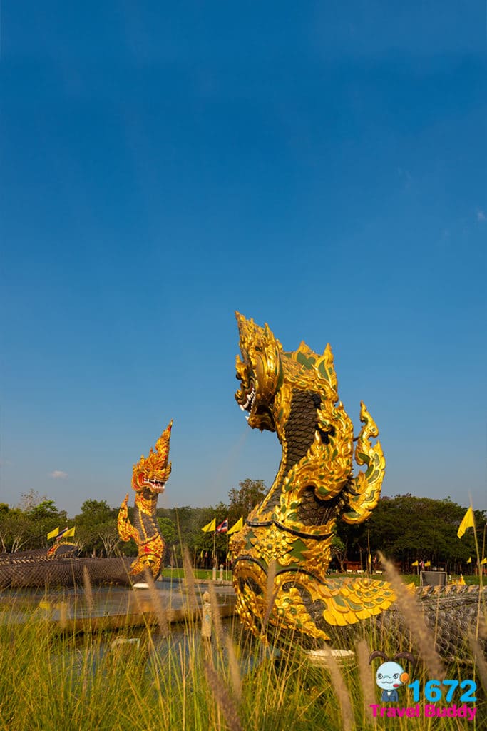 บริเวณสระน้ำด้านหน้าอุโบสถ มีประติมากรรมพญานาคขนาดใหญ่ 2 ตนอยู่คู่กัน คือ พญาศรีสุธนและพญาศรีสุนันท์ เป็นอีกจุดที่นักท่องเที่ยวนิยมมา