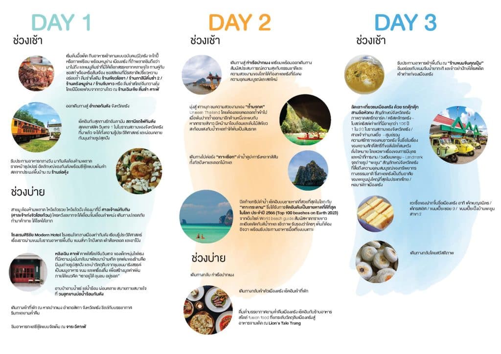บัดดี้ชวนเที่ยวตามรอย 9 มื้อเด็ดเสร็จที่ตรัง นำเสนอแผนการเดินทางท่องเที่ยว 3 วัน 2 คืน พาตะลุยแหล่งท่องเที่ยวดังรวมทั้งร้านเด็ด อิ่มอร่อยจุใจ