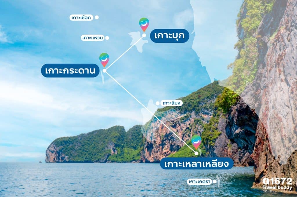 ทริปครั้งนี้บัดดี้เลือกมาแบบ One Day Trip เก็บได้ 3 เกาะสวย แบบชิล ๆ ตั้งแต่ช่วงสายของวันลากยาวถึงเย็น ได้ลอดถ้ำมรกตที่เกาะมุก ต่อด้วยเดินเล่นกินลมชมวิว พร้อมทานอาหารกลางวันที่เกาะกระดาน แล้วจบทริปด้วยการไปเยือนเกาะเหลาเหลียง ชมความงามของชายหาดอันเงียบสงบ นอกจาก 3 เกาะสวยนี้แล้ว ‘ทะเลตรัง’ ยังมีเกาะที่น่าสนใจอื่น ๆ ให้เพื่อน ๆ ได้ตามไปชมความงามอีก เช่น เกาะเชือก เกาะแหวน เกาะลิบง เกาะเภตรา เป็นต้น