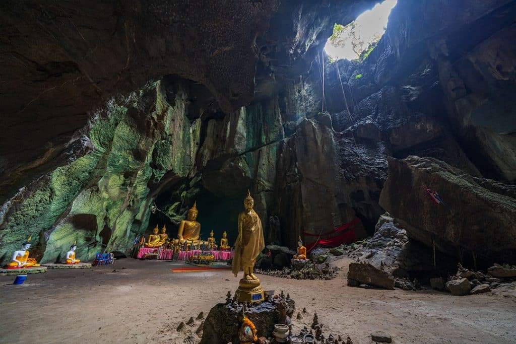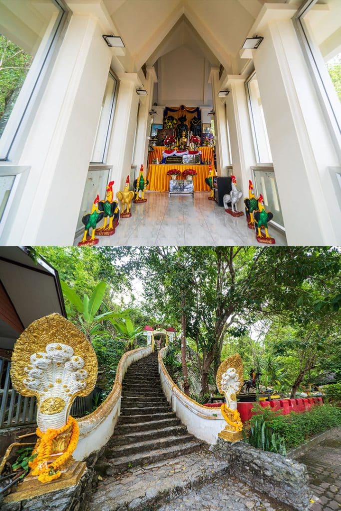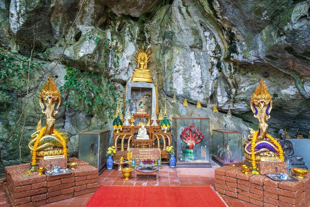 ไฮไลต์ของวัดนี้ที่บัดดี้จะพาเพื่อน ๆ ไป คือการเดินขึ้นเขาเพื่อไปชมถ้ำ โดยเพื่อน ๆ ต้องเดินขึ้นบันไดไป 245 ขั้น ระหว่างทางขึ้นบันไดก็จะมีจุดแวะสักการะ 4 จุด คือ พระตำหนักทรงบัลลังก์ พระตำหนักทรงศีล เขตพระราชฐานพระรูปทรงผนวช (ลานหน้าถ้ำ) และถ้ำเหวตากฟ้า