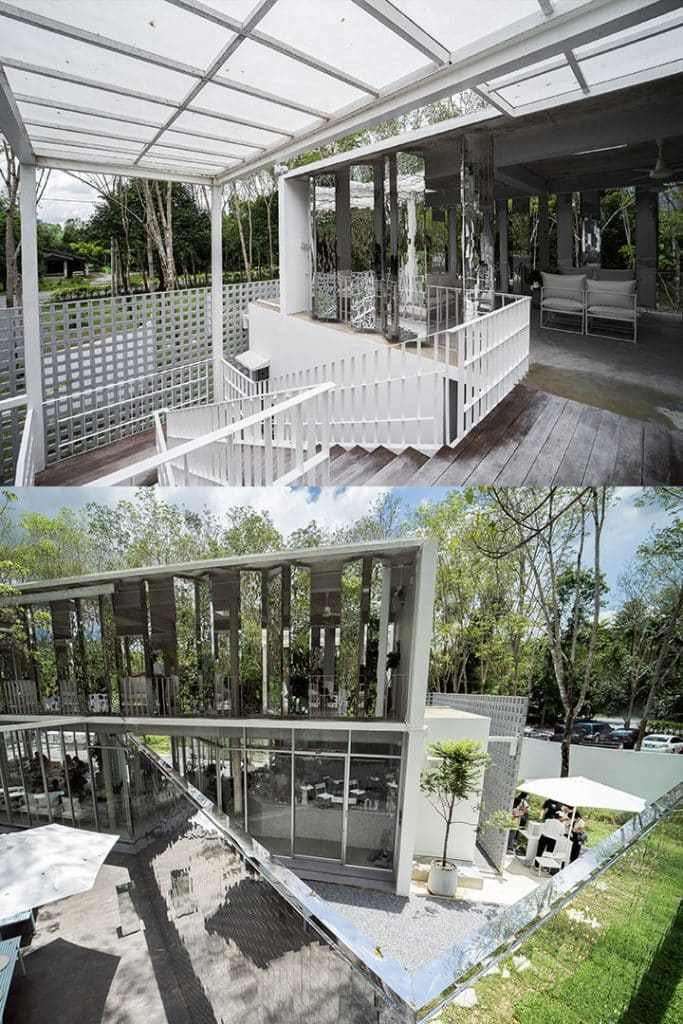 ตัวอาคารมี 2 ชั้น ชั้นล่างเป็นห้องกระจก มองเห็นวิวสวนยางภายนอกสวยสบายตา ชั้นสองเป็นพื้นที่ Out door รับลมได้เพลิน ๆ โดยวิวสวนยางที่เห็น จะดูสวยแตกต่างกันไปแต่ละฤดู แม้จะเป็นสวนยางสวนเดิมก็ตาม