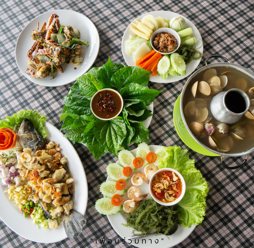 สนุกกับกิจกรรมกันไปแล้วก็ถึงเวลาของความอร่อยกันบ้าง แนะนำว่าอย่าพลาดชิมอาหารที่ปรุงจากวัตถุดิบท้องถิ่นกันนะคะ ตัวอย่างเช่น แกงกะทิหอยกันยอดเป้ง ปูผัดพริกไทยดำ หอยนางรมสด หอยหลักควายลวกจิ้ม ปลาทอดทรงเครื่อง ฯลฯ น่ากินทุกเมนู ซึ่งอาหารทะเลเหล่านี้ ชาวบ้านในชุมชนเพาะเลี้ยงเองทั้งนั้น