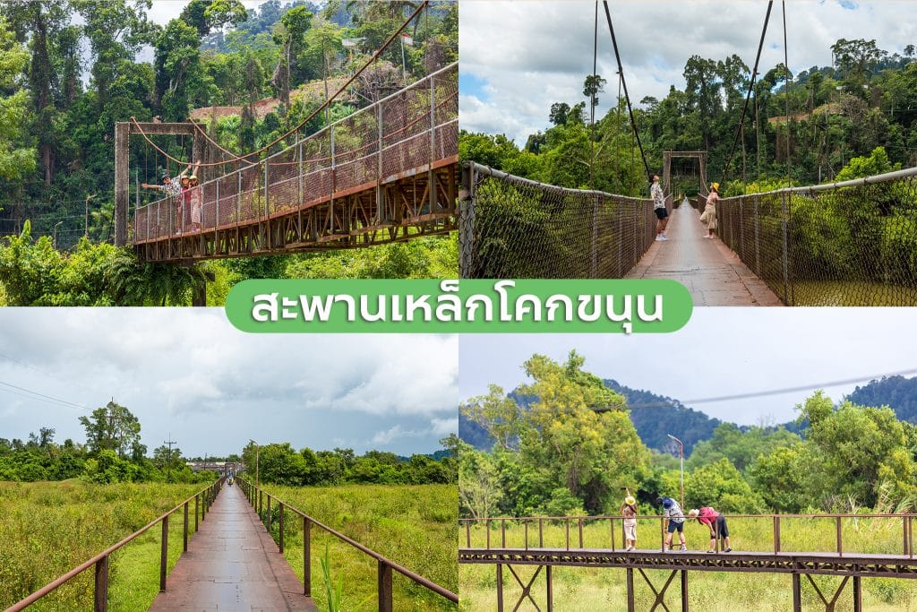 มีอีกชื่อหนึ่งว่าสะพานเหล็กบุญสูง อยู่หมู่ที่ 2 โคกขนุน เป็นสะพานข้ามแม่น้ำตะกั่วป่า เพื่อใช้เป็นเส้นทางให้ชาวบ้านสัญจรในสมัยยุคทำเหมือง ตัวสะพานทำมาจากเหล็กของเรือขุดแร่ที่ไม่ใช้งานแล้ว มีความยาวประมาณ 200 เมตร สัญจรได้เฉพาะรถมอเตอร์ไซด์