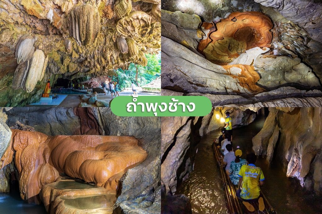 อยู่ภายในบริเวณวัดประพาสประจิมเขต หลังศาลากลางจังหวัด เป็นถ้ำใหญ่อยู่กลางภูเขาช้างเรียกว่า “พุงช้าง” การเข้าชมถ้ำต้องมีเจ้าหน้าที่นำทาง เนื่องจากนักท่องเที่ยวจะต้องเดินลุยน้ำ นั่งแพ และนั่งเรือแคนู ภายในถ้ำมีหินงอกหินย้อยรูปแบบแปลกตา เช่น หินงอกหินย้อยรูปช้างร้อยเชือกเดินตามกันเป็นวงรอบ หินงอกรูปช้างนั่งอยู่ใต้ฉัตรภายในถ้ำ บันไดสีทองเกิดจากหินงอกที่เมื่อถูกแสงไฟจะเป็นประกายสวยงาม อากาศภายในถ้ำเย็นสบาย ใช้เวลาเดินชมประมาณ 1 ชั่วโมง 30 นาที