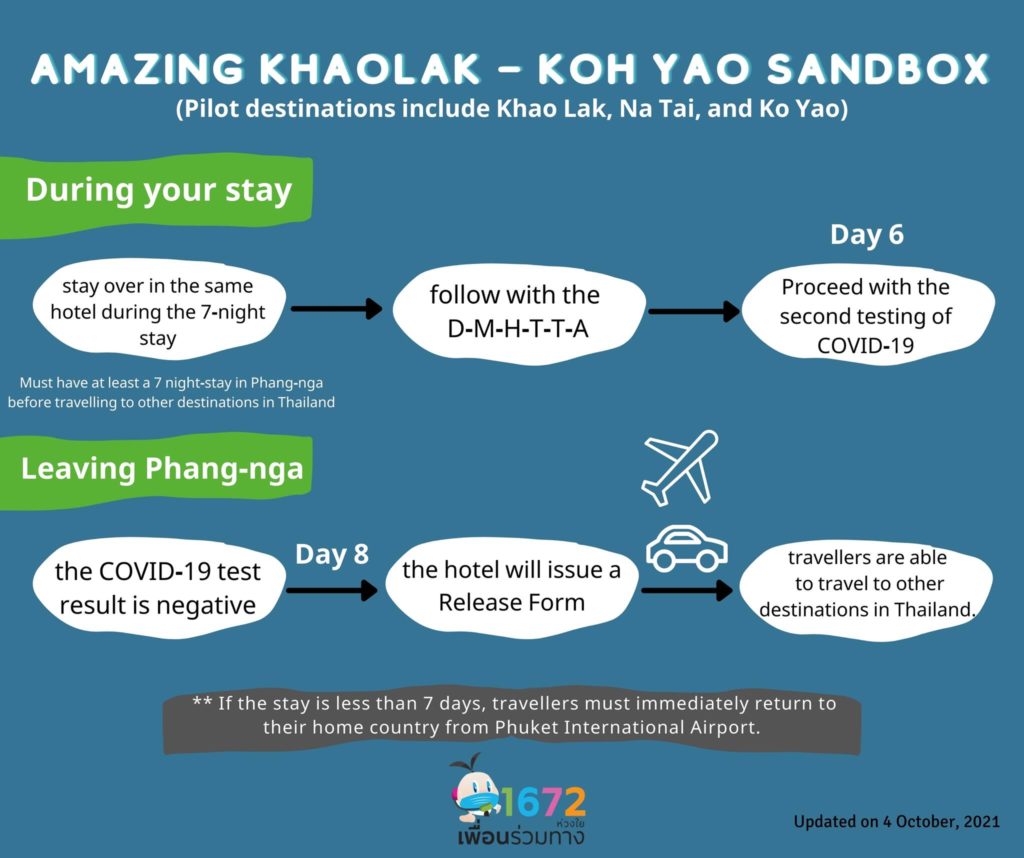 • 3. Must wait for the test result in their room only. In the case, the COVID-19 test result is negative, travellers will be able to leave the guest room and travel within the pilot destinations in Phang-nga.