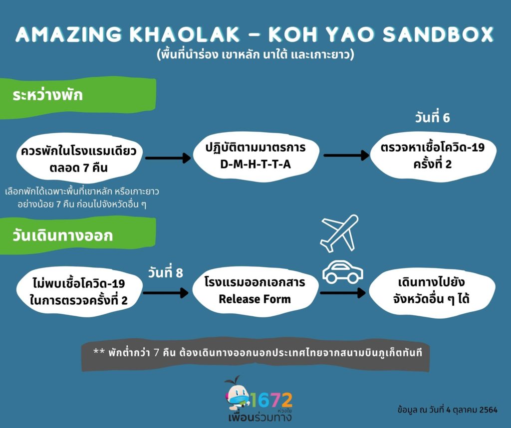 • 2. อยู่ในพื้นที่นำร่องจังหวัดพังงาอย่างน้อย 7 คืน ก่อนการเดินทางไปยังจังหวัดอื่น ๆ