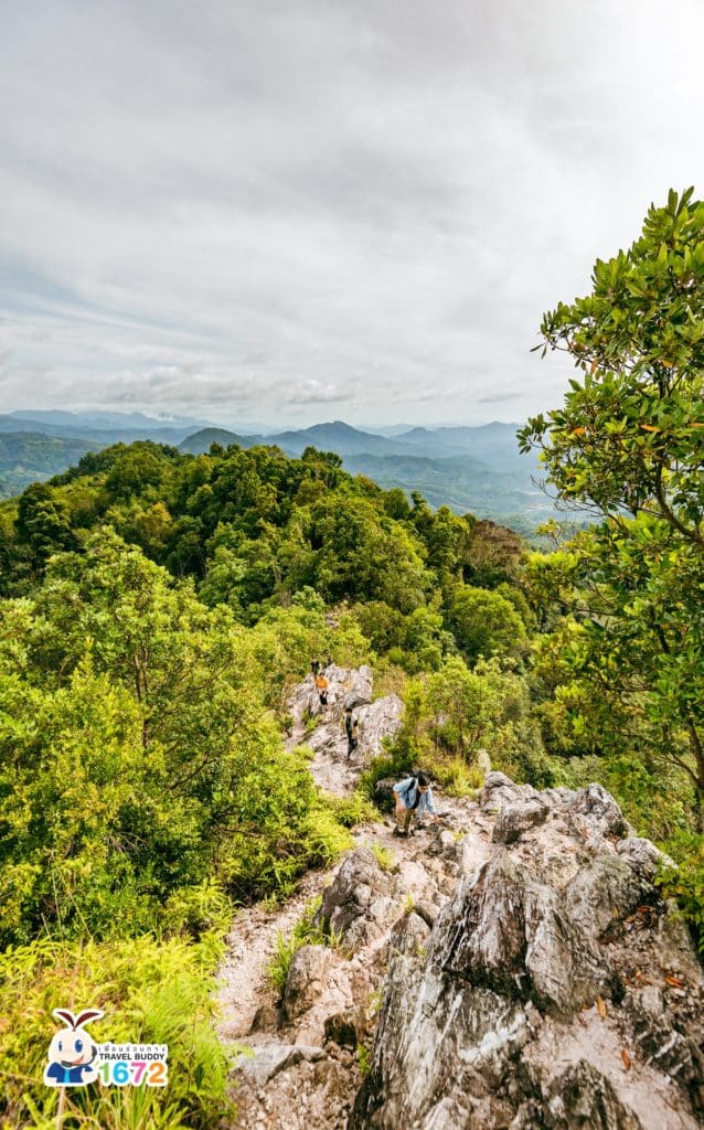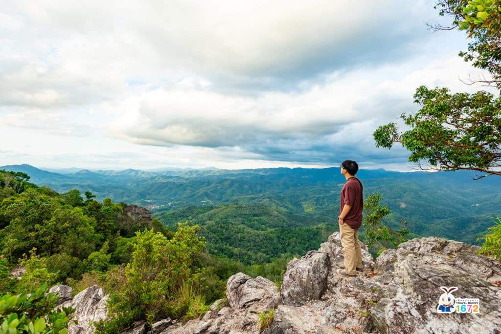 เมื่อเดินขึ้นมาถึงยอด รู้สึกเหมือนนักกีฬาได้เหรียญทองเลยค่ะ เพราะวิวสวยมาก มองเห็นภูเขาสลับซับซ้อนได้ 360 องศาตามที่สตาฟบอกไว้จริง ๆ ฆูนุงซีลีปัตที่ไม่มีหมอกก็สวยไปอีกแบบใช่ไหมล่ะคะ