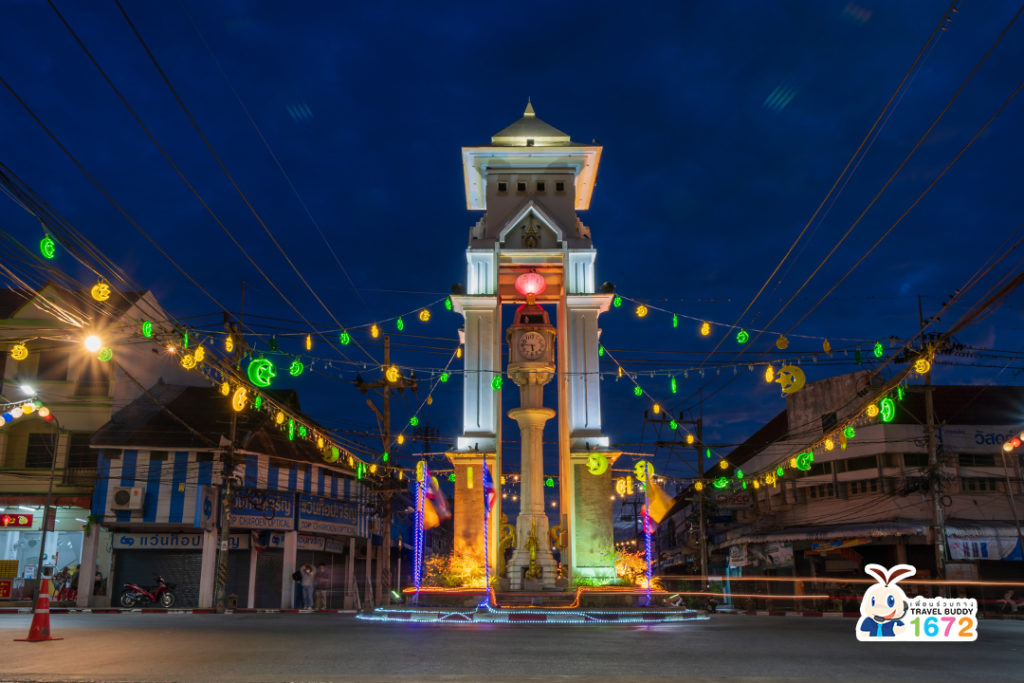 เดินเล่นดูเมืองทั้งที ก็ต้องมาแวะถ่ายรูปที่หอนาฬิกาเบตง แลนด์มาร์คของที่นี่สักหน่อย หอนาฬิกานี้สร้างด้วยหินอ่อนจากจังหวัดยะลา หากเพื่อน ๆ ไปเที่ยวช่วงเดือนกันยายนถึงมีนาคม จะเจอนกนางแอ่นหลายร้อยตัวเกาะสายไฟบริเวณนี้แน่นขนัดเลยล่ะ คนที่นี่บอกแอดมาว่า หากเดินอยู่แถวนี้แล้วโดนนกนางแอ่นอึใส่ จะได้กลับมาที่นี่อีกในเวลาไม่นาน แต่แอดว่า เดินดี ๆ ไม่โดนอึน่าจะดีที่สุดแหละ