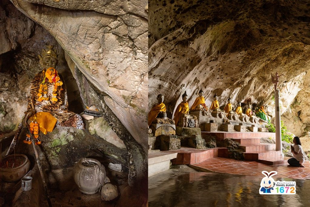 นอกจากพ่อท่านบรรทมแล้ว ในถ้ำยังมีรูปปั้นเจ้าแม่กวนอิม พระสังกัจจายน์ รวมถึงพระพุทธรูปอีกมากมาย แม้จะเป็นถ้ำ แต่ก็ไม่อึดอัด ไม่ร้อนอบอ้าว หายใจได้สะดวก เนื่องจากในถ้ำมีปล่องถ้ำธรรมชาติ ทำให้ระบายอากาศได้ดีและช่วยให้มีแสงสว่างในถ้ำ หากใครสนใจอยากมาสัมผัสความขลังกลางขุนเขาแบบแอด ตามมาได้เลย