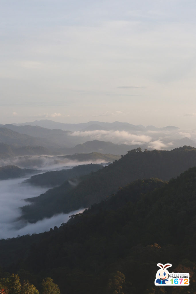 วิวสวยมาก หมอกลงหนาสุด ๆ มองไปด้านขวาเพื่อน ๆ จะเห็น “ฆูนุงซีลีปัต” อีกหนึ่งจุดชมหมอกสุดฟินที่เบตงเหมือนกัน