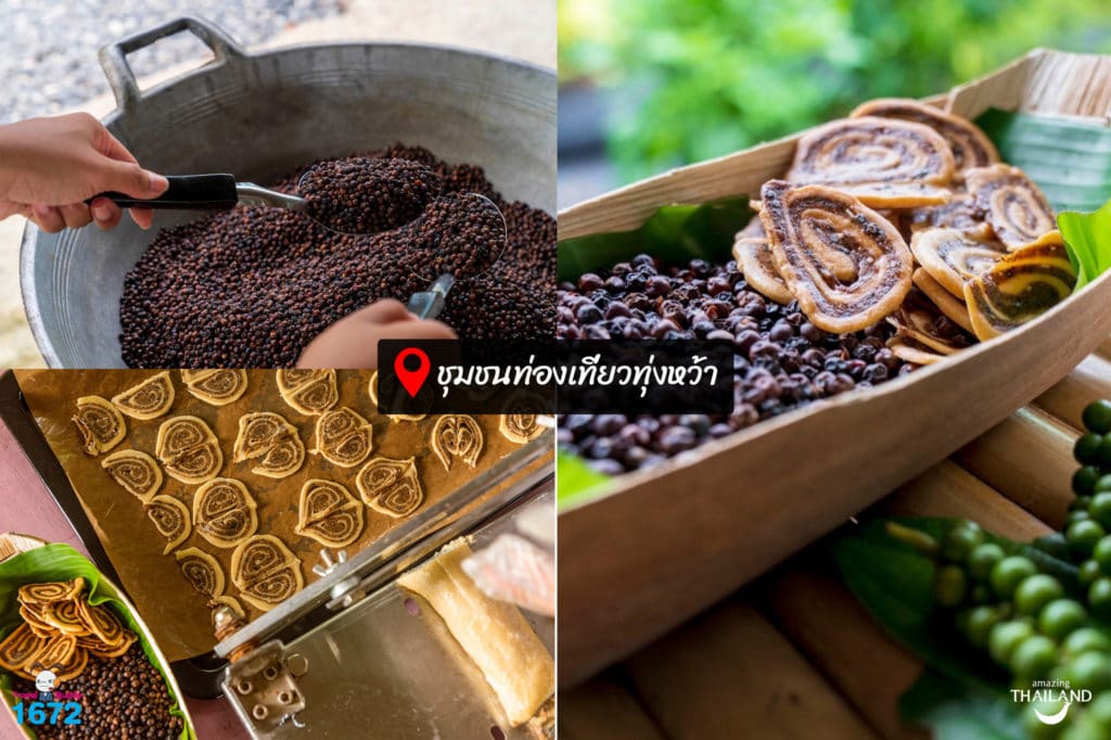 ต่อมาคือ การทำขนมคุกกี้พริกไทย ซึ่งจะใช้เมล็ดพริกไทยที่คั่วเสร็จแล้ว มาผสมกับแป้งว่าวที่ใช้สำหรับทำขนมคุกกี้ จากนั้นนำไปแช่ช่องแช่เย็น พอแป้งแข็งตัวจึงนำมาตัดเป็นแว่น ๆ และนำไปเข้าเครื่องอบ ตอนแรกกังวลว่าจะอร่อยมั้ย แต่สรุปพอได้ลองชิม อร่อยจนแปลกใจว่าเข้ากันได้ไง