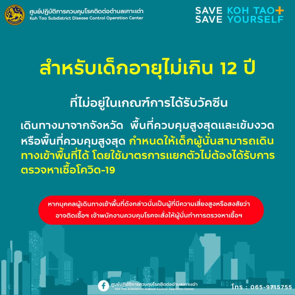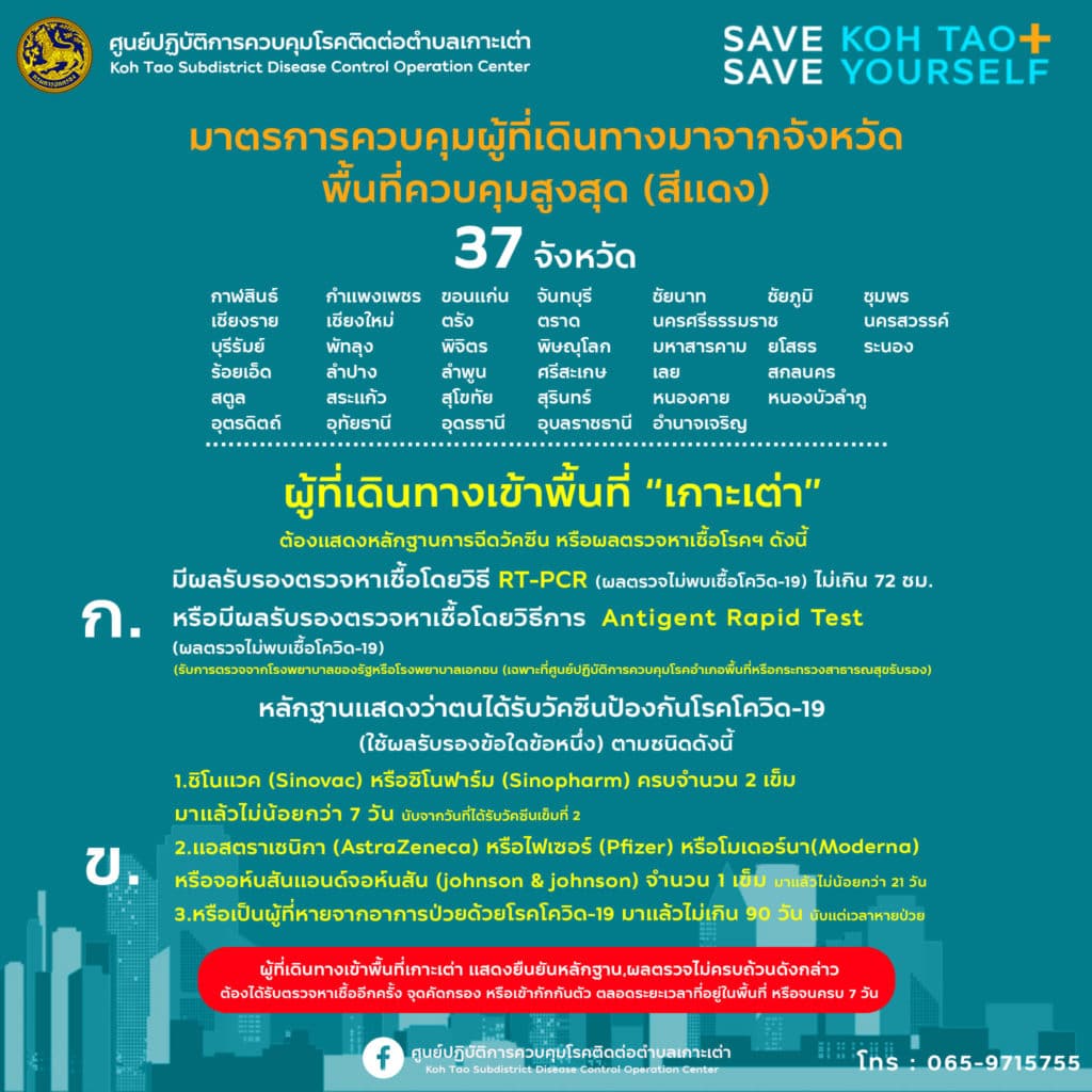 มาตรการสำหรับผู้ที่เดินทางเข้าเกาะเต่า (เผยแพร่ วันที่ 7 ส.ค. 2564)