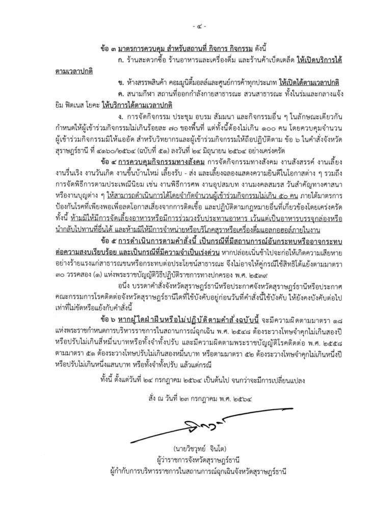 คำสั่งจังหวัดสุราษฎร์ธานี ที่ 4798/2564 (ฉบับที่ 57)