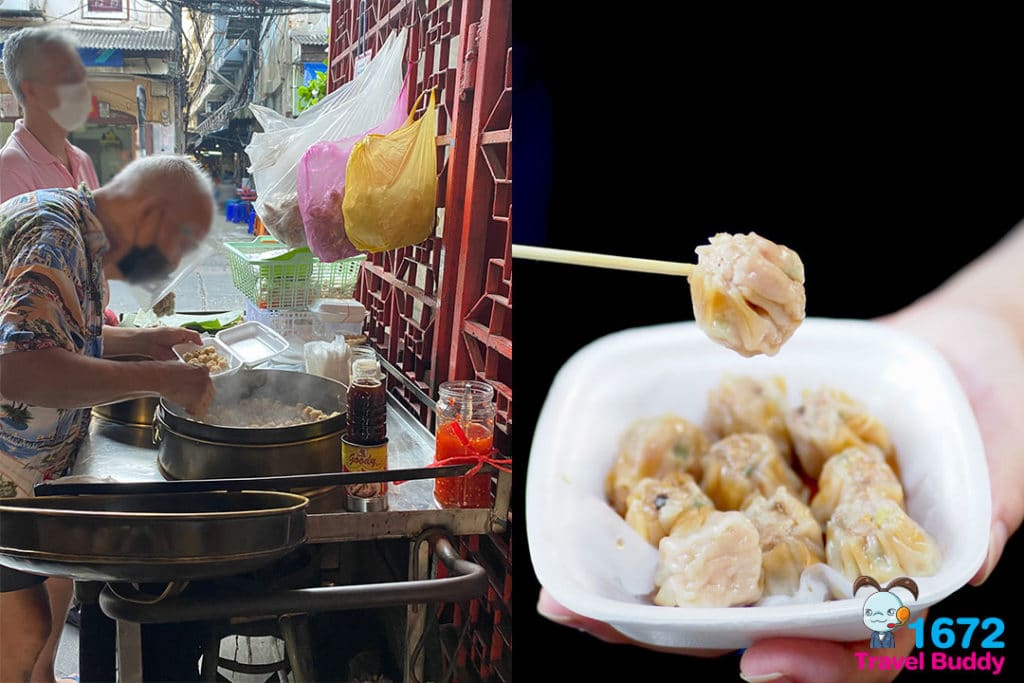 A humble cart with more than 105 years of history to its credit is our next stop. Commonly known as Pae Sia’s dumplings, the vendor can be found at the entrance of the Vietnamese temple, Wat Mongkhon Samakhom (Vietnamese: Chùa Hội Khánh).