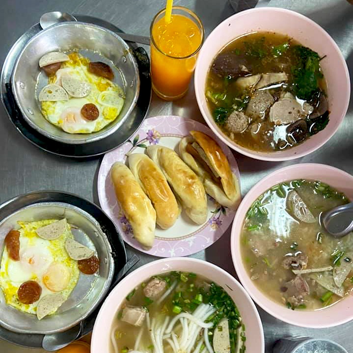 To taste local food, we recommend you have breakfast at Aim Oat. Try their pan-fried eggs or other dishes like Tom Luat Mu – pork blood soup or Vietnamese sandwich. Main ingredients such as Chinese and Vietnamese sausages are home-made.