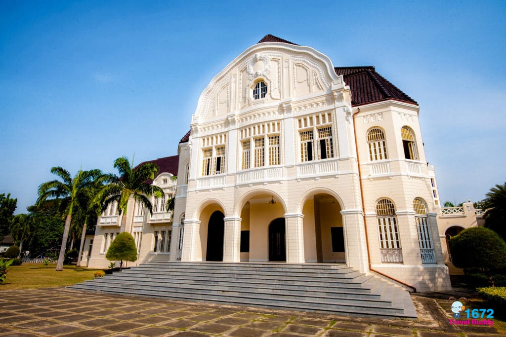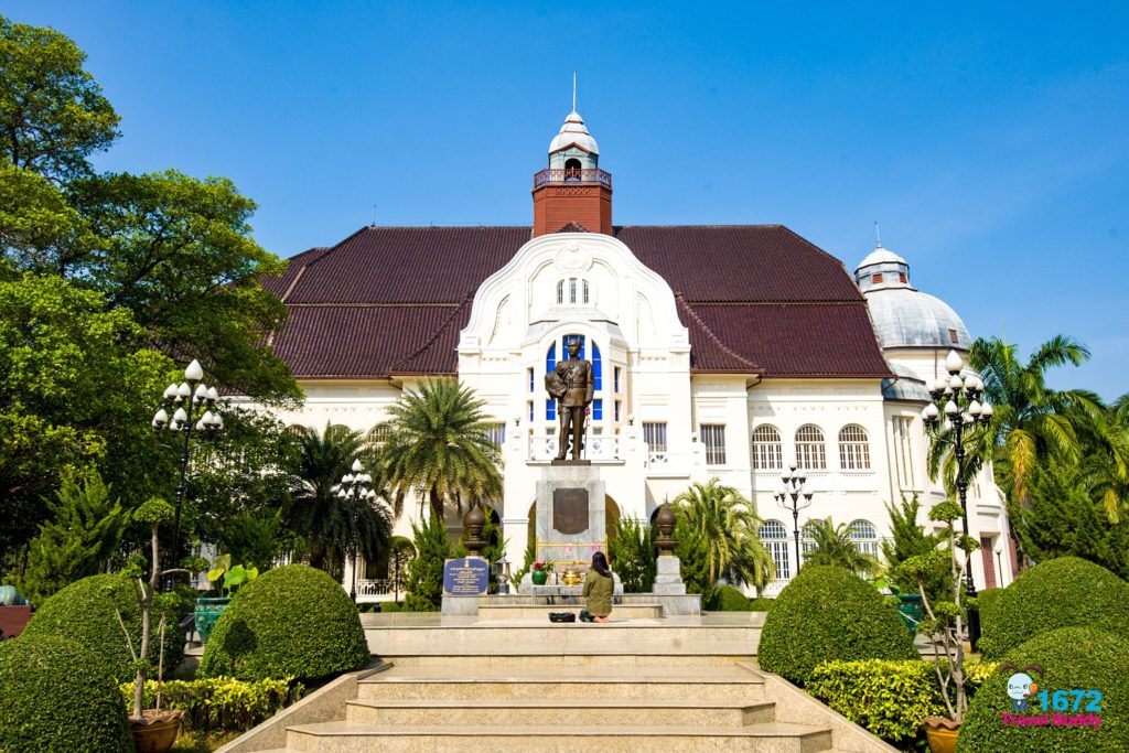 The elegant two-storey building was designed by German architect Karl Deurring. The ground floor houses a beautiful green hall, a dining room, and a kitchen. The second floor is where the bedroom and study are located. (Please note that most of the furniture has been removed.) A statue of King Rama V the Great stands at the front of the building.