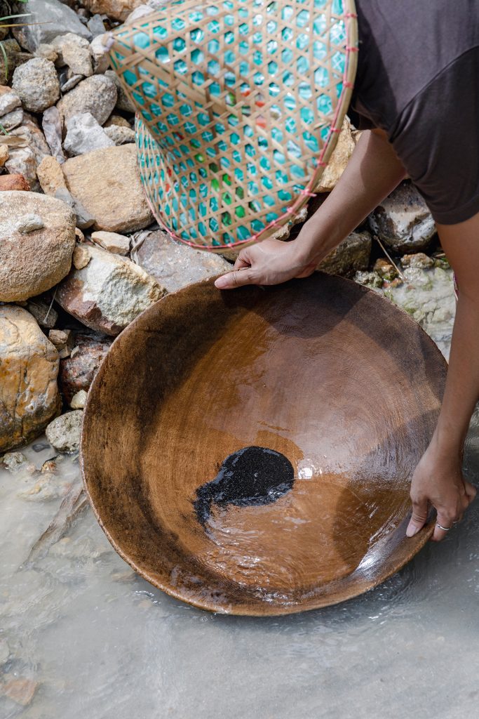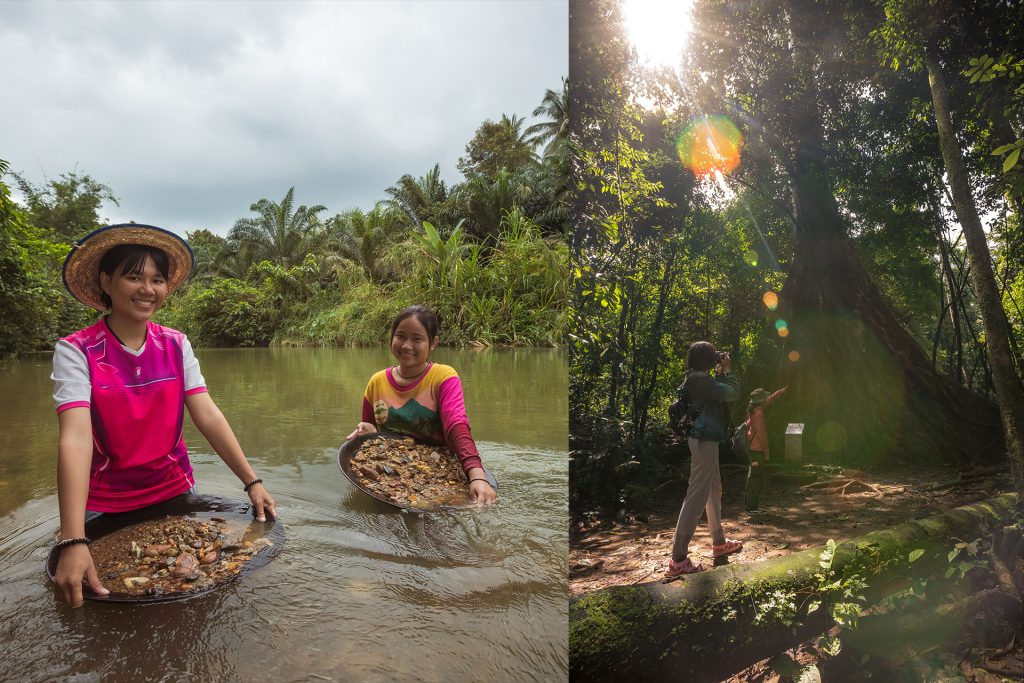 หากมาที่นี่ เพื่อน ๆ สามารถทดลองร่อนแร่ที่ลำธารได้ด้วยตัวเองโดยการใช้ “เลียง” อุปกรณ์ในการร่อนแร่ของชาวบ้าน มีลักษณะเป็นถาดไม้โค้งลึกตรงส่วนกลาง จุ่มน้ำตักทรายและหินที่อยู่ในลำธารสายแร่ขึ้นแล้วค่อย ๆ โยกหมุนวัตถุเลียงวนมือเป็นวงกลม และปล่อยให้น้ำไหลผ่านไปเรื่อย ๆ จนเศษหินเศษทรายลอยไปตามสายน้ำ และเหลือแค่ผงดีบุกสีดำขนาดอยู่บนเลียง